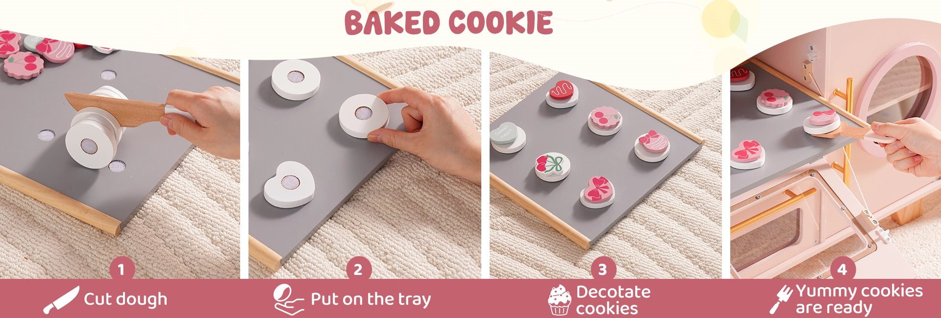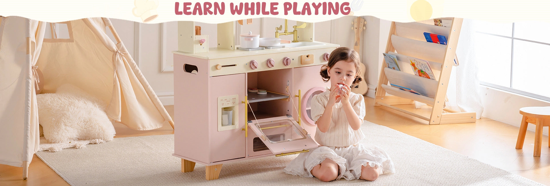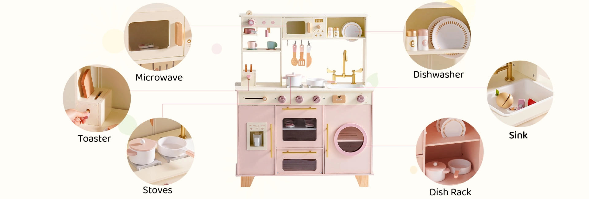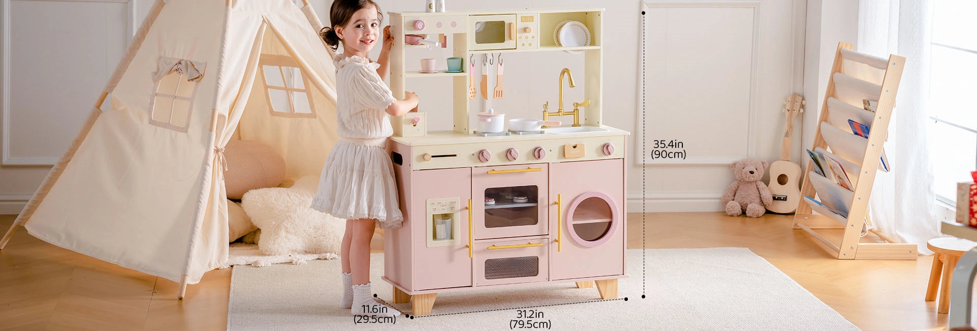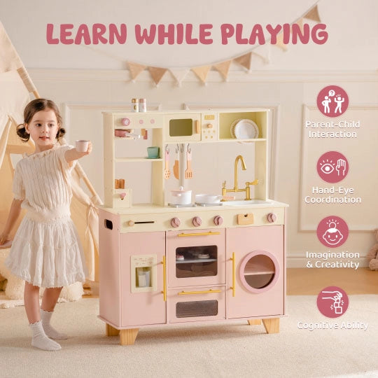 Pink Wooden Play Kitchen Set – Oven, Fridge, Sink & More