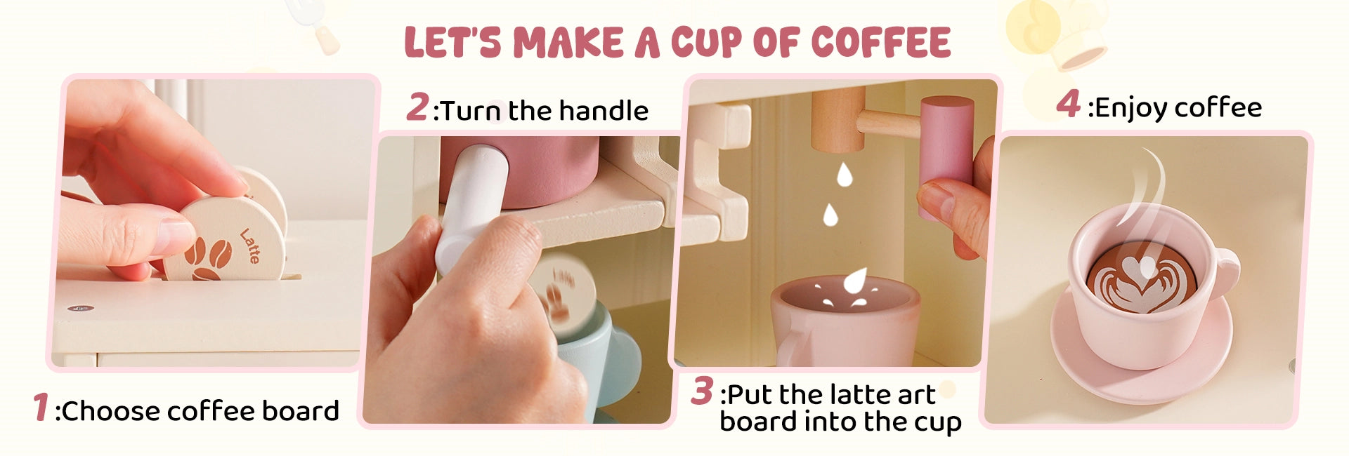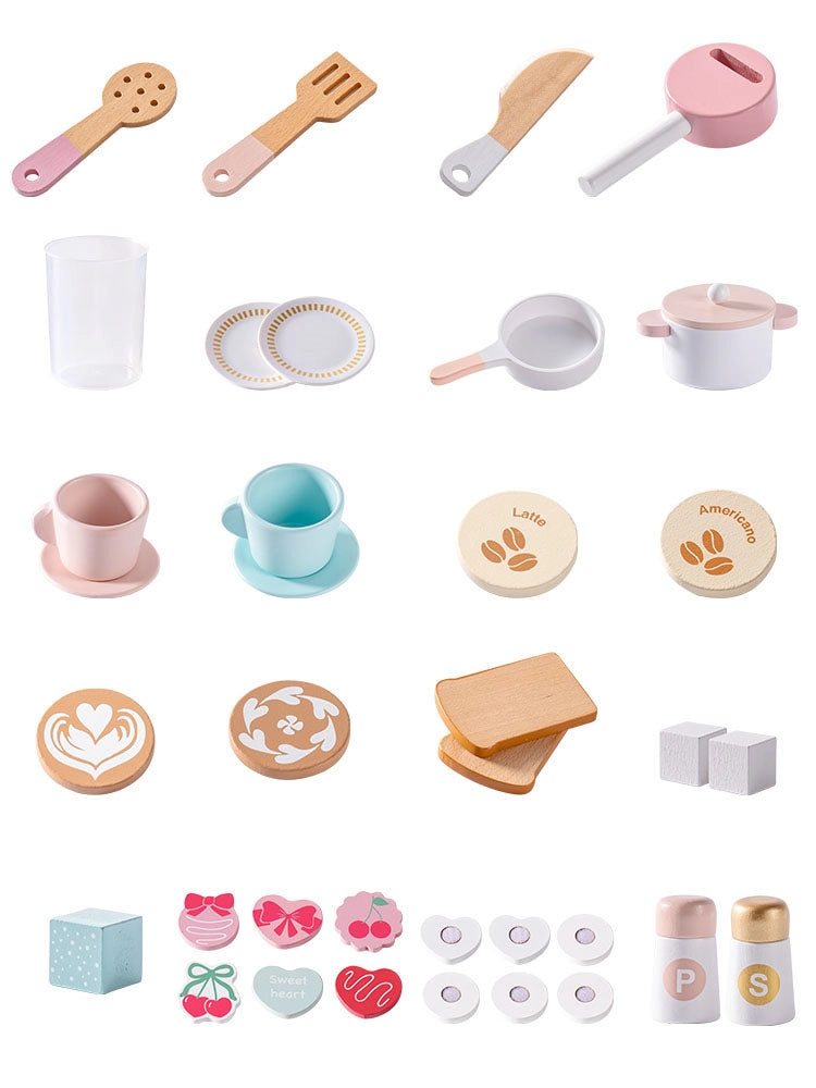 This pink wooden toy kitchen sparks early creativity and imaginative role play for toddlers. Complete with oven, fridge, detachable sink, coffee maker, and toaster, it offers endless pretend cooking scenarios. Role play builds language skills, social interaction, and fine motor development — as children explore culinary adventures with friends and family.